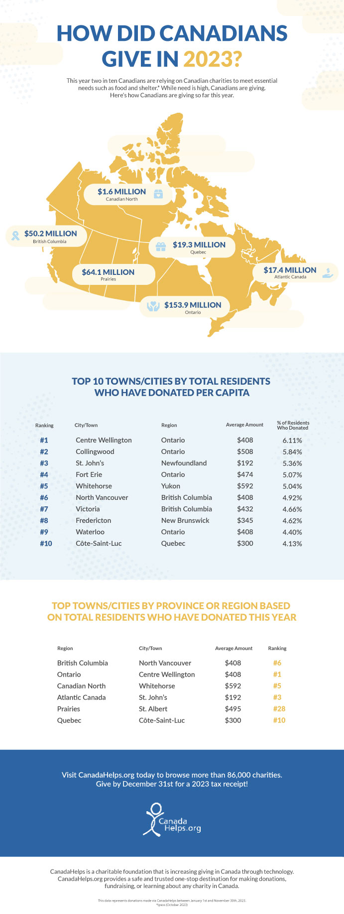 CanadaHelps Releases Year-End Report Highlighting 2023 Giving Trends and Revealing Canada’s Most Generous Cities